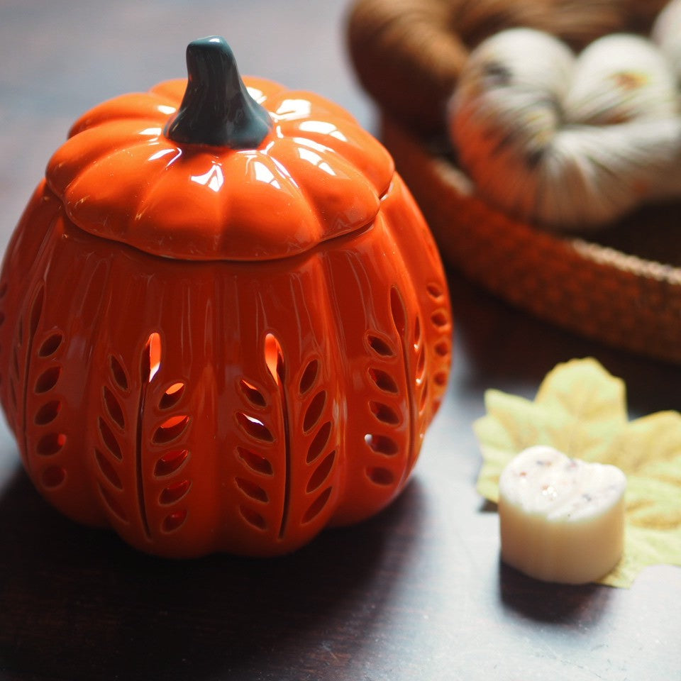 Create a cosy mood this autumn with this sweet orangevpumpkin oil burner, decorated with leaf cut-outs.